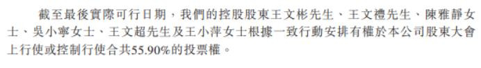 值得注意的是,八马茶业家族色彩浓厚。招股书显示,王文彬、王文礼、陈雅静、吴小宁、王文超及王小萍构成一致行动集团,合计持有公司55.9%的投票权,其中王文彬、王文礼、王文超及王小萍四人为兄妹关系,而陈雅静是王文彬的妻子,吴小宁是王文礼的妻子。此外,公司总经理吴清标与王文彬是表兄弟关系,联席总经理王焜恒则是王文彬的儿子。
