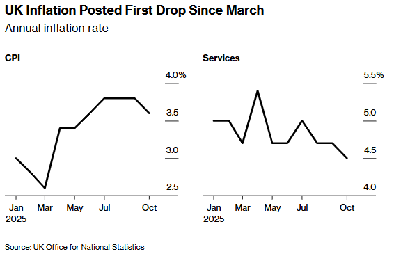 "通胀见顶的证据应会促使央行在12月降息,"Schroders高级经济学家乔治·布朗表示。